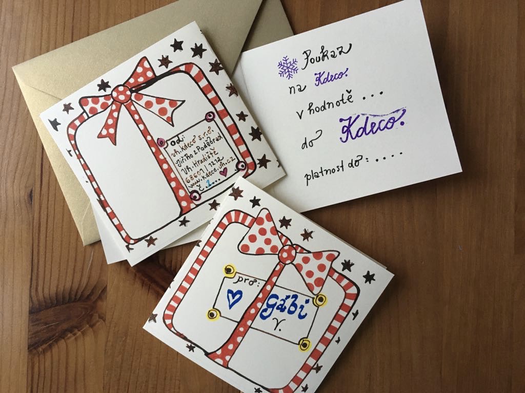 Poukaz můžete objednat přes email kdeco@uh.cz a poskytnout informace pro personalizaci. Možná je také telefonická domluva na 777 577 109, rádi vám vyjdeme vstříc při tvoření radosti pro vaše blízké.