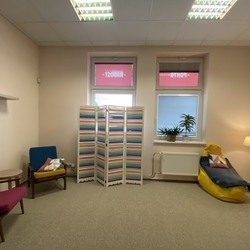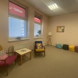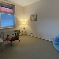 Kancelář vhodná na terapie, konzultace s klientem či klidnou individuální práci. Může sloužit také jako terapeutická a masérská místnost.