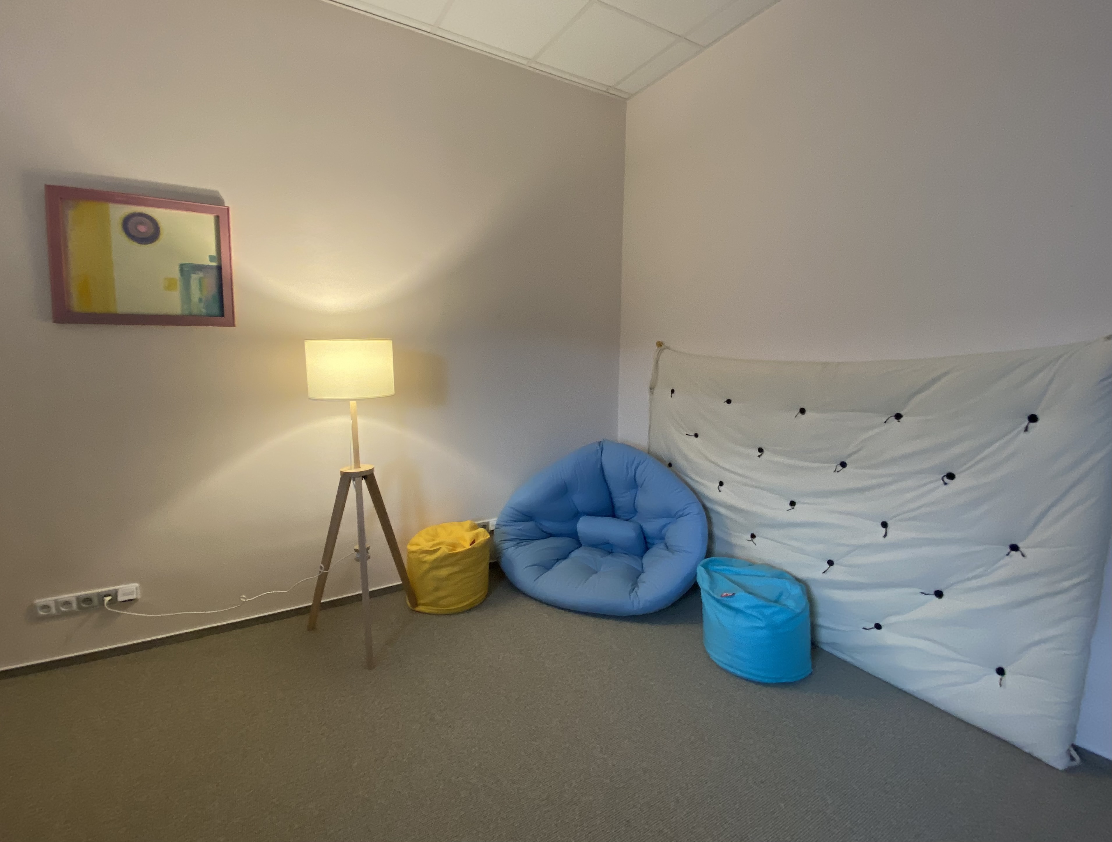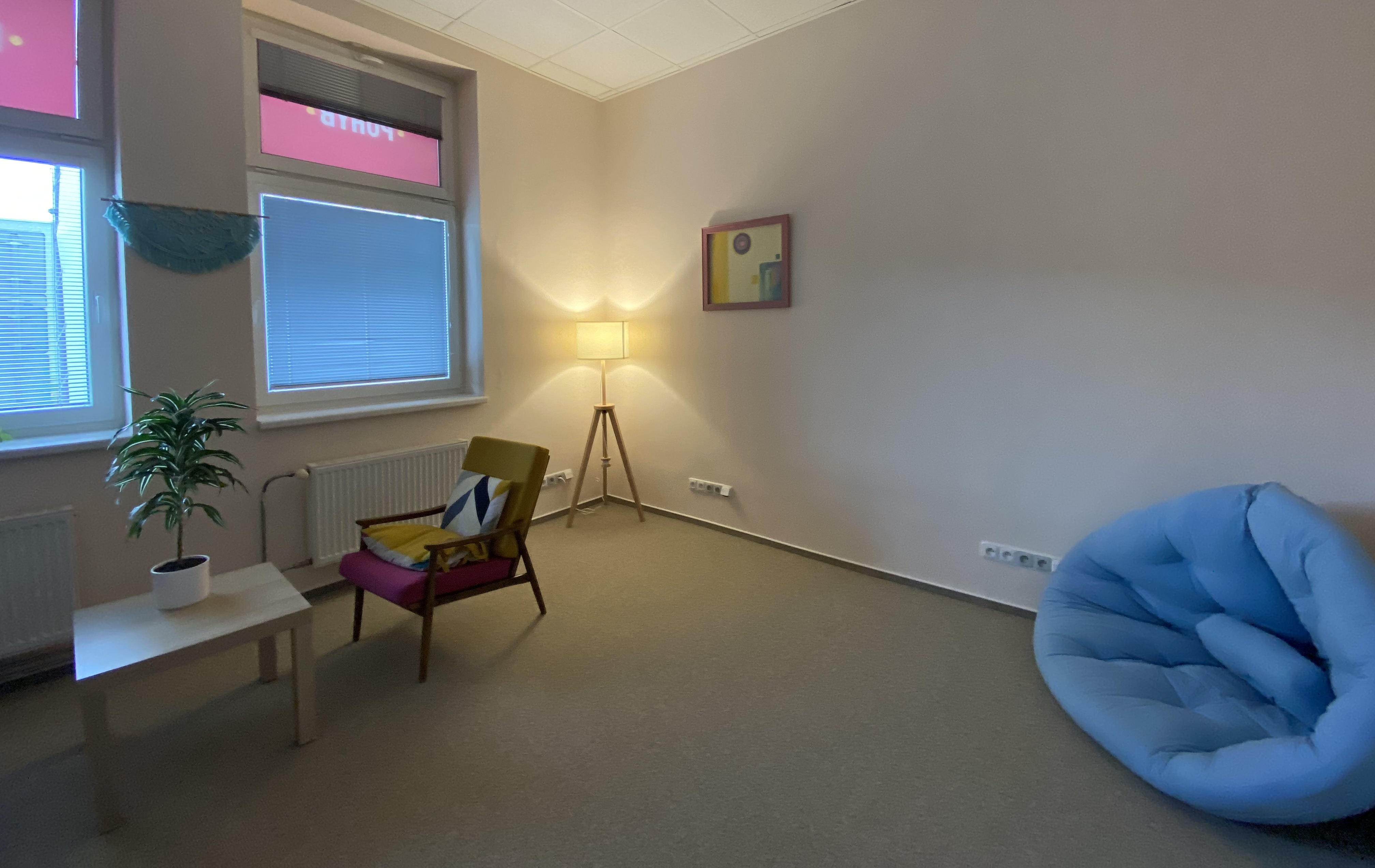 Příjemná místnost vhodná na terapie, konzultace s klientem či klidnou individuální práci.