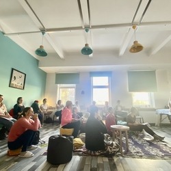 Je vybavena sound systemem. K dispozici jsou polštáře, deky, židličky, wi-fi, flip chart. Mistnost má cca 7x7m.