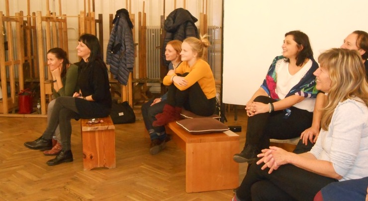 Meditace - vedené i aktivní, improvizace projevu, práce s dechem, tělem a hlasem, živé obrazy, monology, sdílení k hlubšímu sebeuvědomění, tanec.